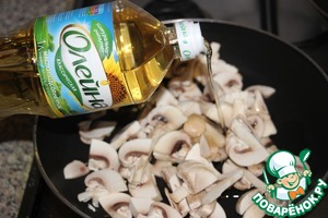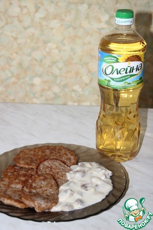 Сделать соус: грибы порезать, обжарить на сковороде на растительном масле «Олейна классическая». Добавить муку, сметану, соль и потушить на медленном огне под крышкой в течение 10 мин.