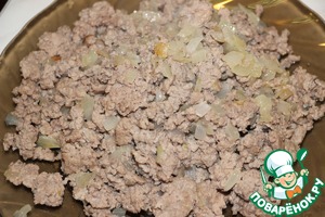 Добавить к луку фарш, посолить, поперчить, жарить до готовности.