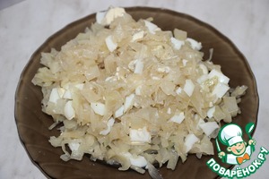Когда капуста будет готова добавить в начинку отваренное, мелко нарубленное яйцо.