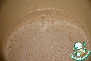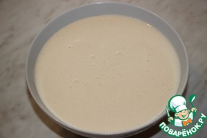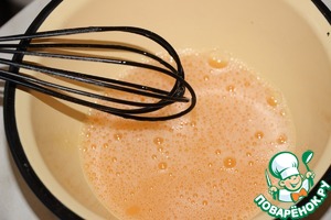 Добавляем к взбитым яйцам кипящую воду, осторожно, тонкой струйкой. Масса начнёт расти.