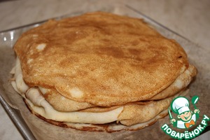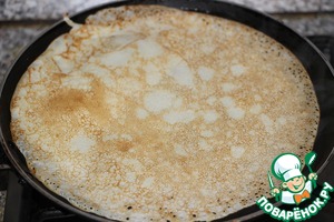 Жарим тонкие блинчики стандартным способом. Из данных ингредиентов их получается примерно 20 штук.