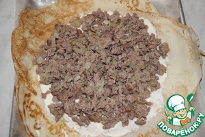 Пирог блинный с мясной и капустной начинкой. Рецепт от ТМ Олейна.