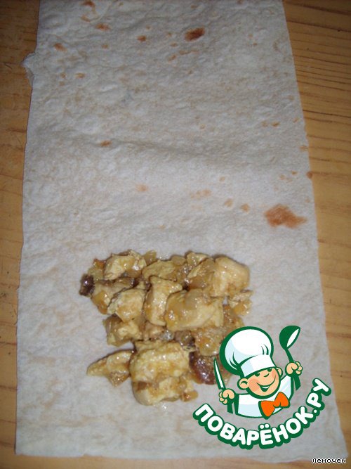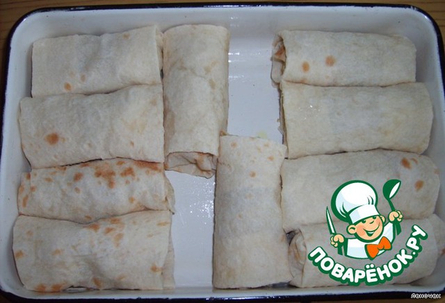 1/3 часть листа. Положить начинку на кусок лаваша и завернуть как голубец