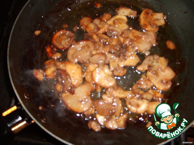 • Грибы я тоже обжарила и остудила. Но потом оказалось, что пачки маловато, можно и целую пачку положить.