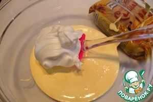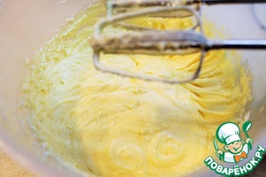 Также взбейте отдельно яичные желтки и оставшиеся 5 столовых ложек сахара, до бледно-желтого цвета.