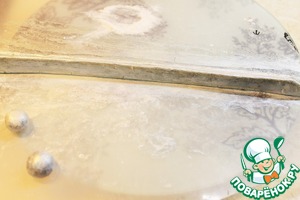 Теперь подготовим мастику. Из мастики вырезаем полоску и обрезаем немного края дугообразно.