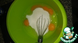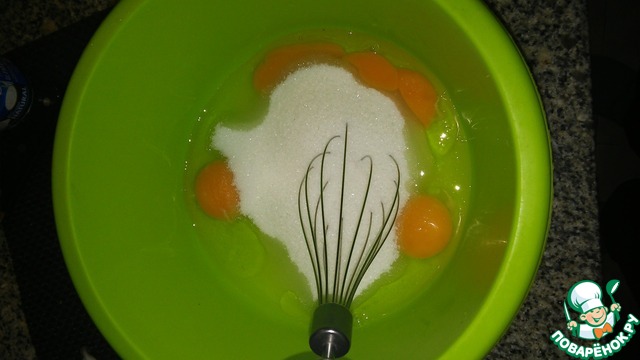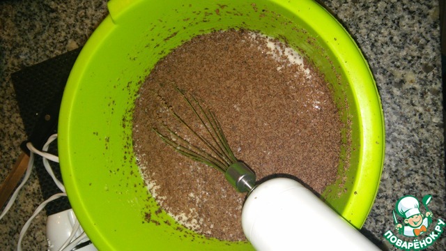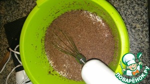 • Отмеряем 3 стаканчика муки, добавляем разрыхлитель и просеиваем. Все тщательно размешиваем.
