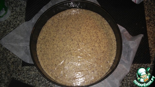• Застилаем форму пекарской бумагой (если нет бумаги, можно просто смазать подсолнечным маслом), выливаем туда тесто и ставим в разогретую духовку на 30 минут при температуре 180С.