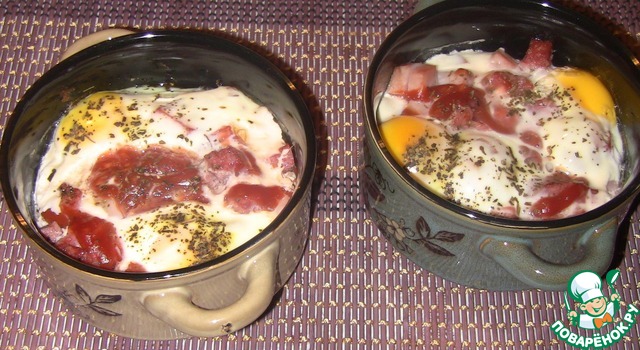 Всем приветик, хочу поделиться с вами рецептом "Запечённые яйца в горшочках"! Блюдо, болгарской кухни! Готовила первый раз, осталась очень довольна! Рецепт нашла на страницах инета!