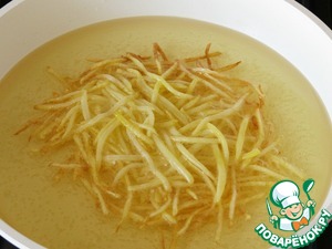 Затем картофель обжариваем в этом масле порционно, формируя круглые лепёшки, до золотистого цвета.