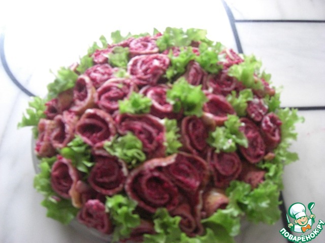 А что касается майонеза, так, уважаемые, есть отдельные форумы, где собираются противники оного и делятся рецептами без него. А "шубу" без майонеза есть невозможно (на мой вкус). А вот оформить подобными розочками можно любой свекольный салат, и красиво и полезно.