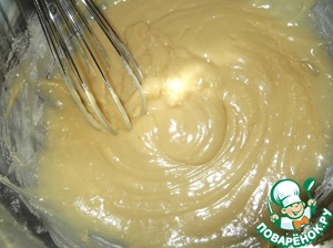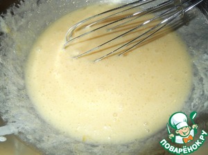 Растопленное теплое масло смешиваем с сахаром. После этого добавляем яйца и тоже перемешиваем.
