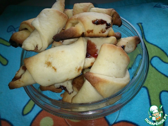 Рогалики с повидлом любят многие и рецептов выпечки рогаликов много. Хочу предложить свой вариант потому как тесто в готовом виде практически не сладкое, в меру рассыпчатое и несколько дней сохраняет свежесть.