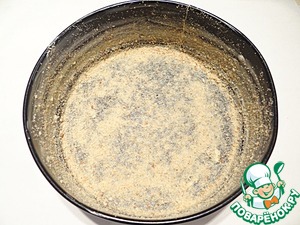 Круглую разъемную форму диаметром 20 см смазываю сливочным маслом и посыпаю панировочными сухарями.