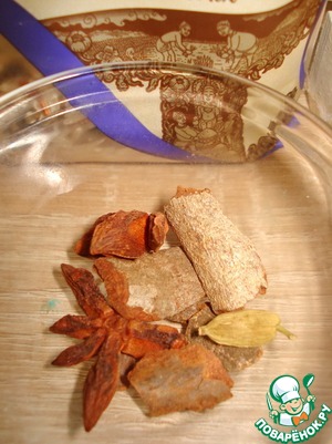 Рис будем отваривать, в воде с молоком, добавляя кардамон, бадьян, пол палочки корицы.