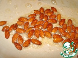 В сковороде разогреем сливочное масло (лучше топленное) и обжарим горсть миндаля.