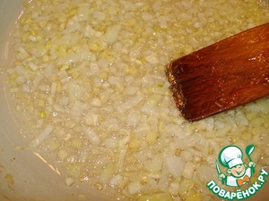 Перемешать и готовить на среднем огне в растительном масле, пока лук не станет золотистого цвета.