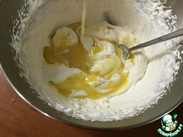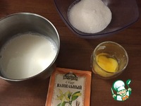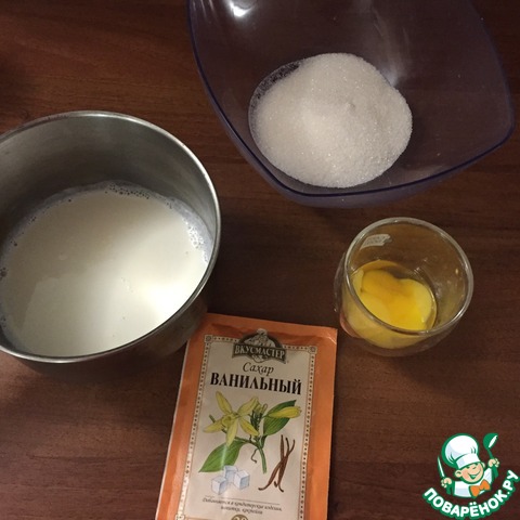 Молоко вскипятить, охладить, добавить сахар, ванильный сахар, яичные желтки. Взбить до однородной массы. |