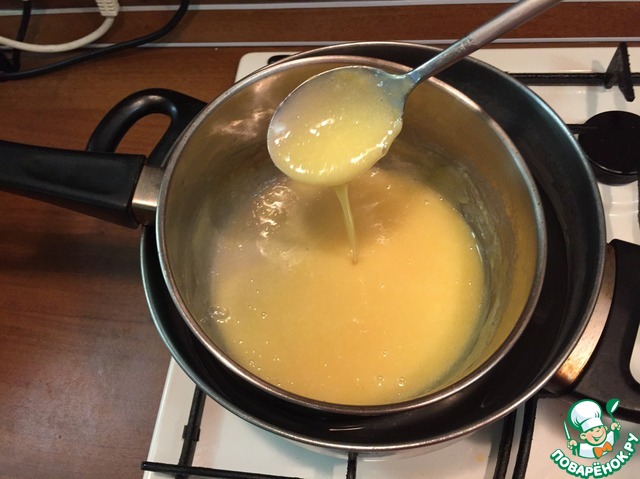 Массу поставить варить на водяной бане, постоянно помешивая |