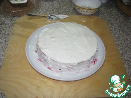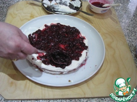 Торт из замороженной вишни со взбитыми сливками из готовых бисквитных коржей