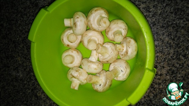 • Вливаем эту смесь в грибы, солим и аккуратно перемешиваем.
