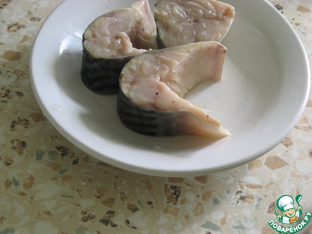 • Берем "посудину", режем рыбку на порционные кусочки, складываем в емкость.