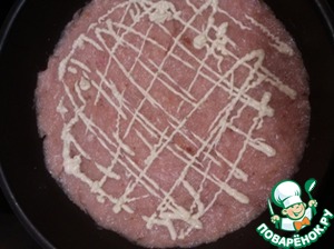 Дно формы для запекания выстилаем бумагой для запекания и выкладываем в нее фарш, разравнивая так, что бы получился ровный слой в полтора-два пальца толщиной.