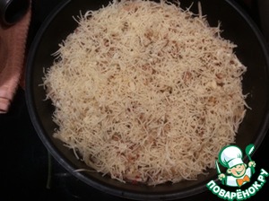 Голландский сыр натереть на терку среднего размера и выложить на слой яблок. Как показывает практика-много сыра не бывает!