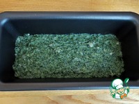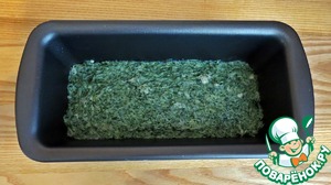 И начинаем укладывать слои. Первый слой - со шпинатом. Укладываем плотно и равномерно. |