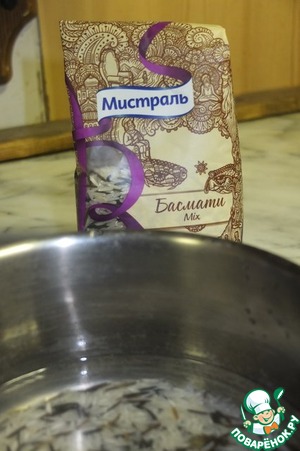 В кипящую воду закладываем рис и варим до полуготовности, примерно 8-10 минут. -