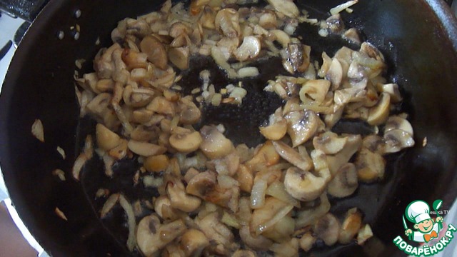 1. Обжариваем грибы с луком. Солим и перчим по вкусу.