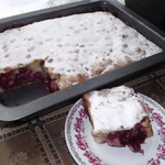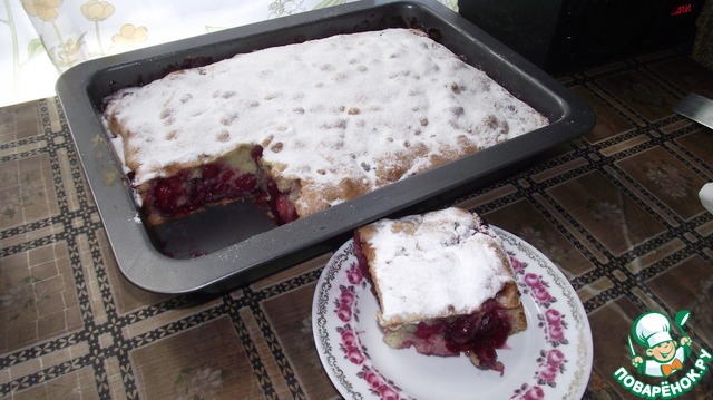 Напеку вам, друзья, пирогов. Брызги радости брошу я в тесто, Подолью аромата цветов, Чтобы выпечка пахла чудесно... М-да, пироги я очень люблю. Всякие. Люблю их печь, ещё больше угощать родных и друзей. Особенно люблю пироги с начинкой. Сегодня вам решила представить пирог с вишней. Это не праздничный вариант, он простой и скромный, но один из моих любимых, и один из самых популярных у моих подруг. Может потому что не самый опасный для фигуры, а может благодаря богатому вкусу и аромату свежей вишни. Есть его лучше сразу, как только остынет, пока из кусочка на тарелку вытекает киселеобразный вишневый сок...