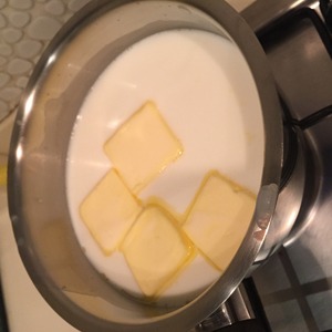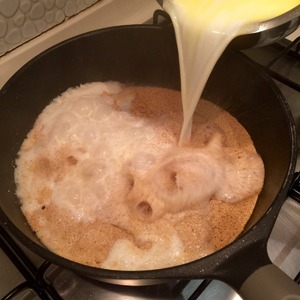 В молоке растопить сахар, ванильный сахар и масло, доведя до кипения.