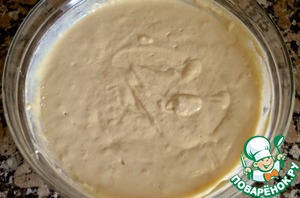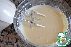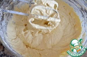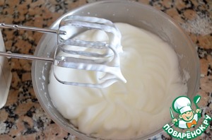 4. Взбить белки до устойчивой пены. Ввести половину взбитых белков в тесто, размешать и ввести вторую половину.