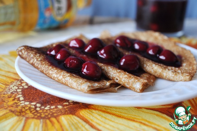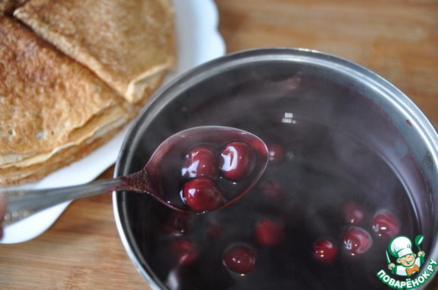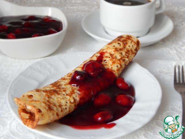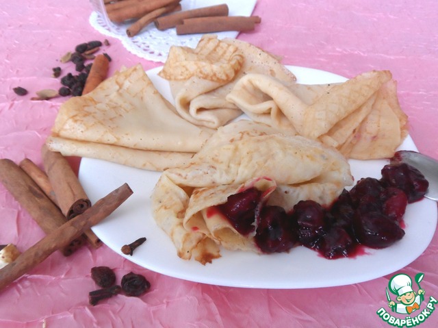 Рецепт «Блины с вишнёвым соусом "А-ля глинтвейн"»: