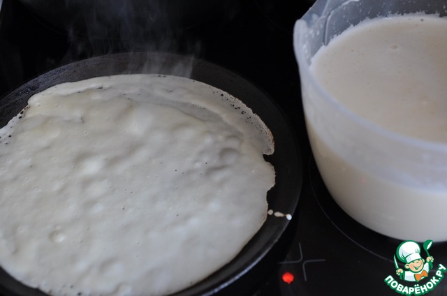 Сам по себе соус готовится быстро. Но сначала нужно испечь блины (блинчики).