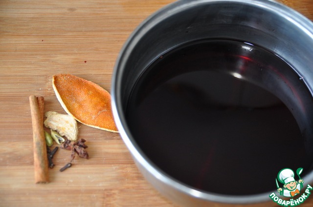 Из вина убираем пряности (можно процедить), кладём вишню и варим ещё 5 минут.