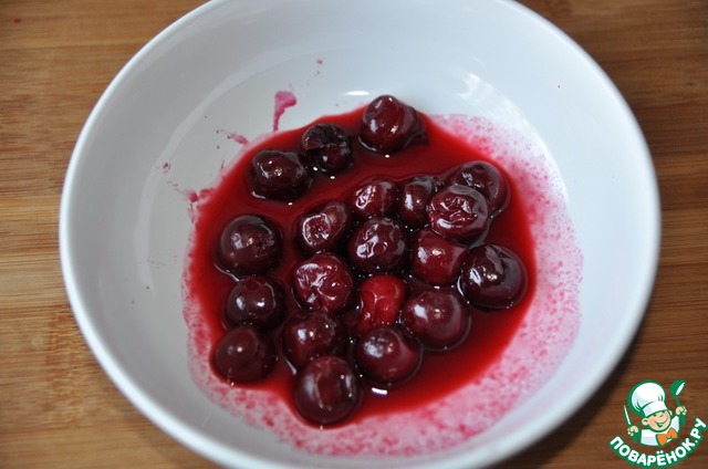 Берём замороженную вишню, размораживаем, сок сливаем (оставляем).