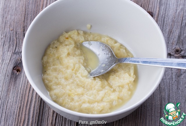 • 3. Лук измельчить в блендере в грубое пюре, добавить остальные ингредиенты для заправки, еще раз все взбить блендером. Должен получиться соус по консистенции как сметана. Можно регулировать густоту с помощью добавления воды или оливкового масла.