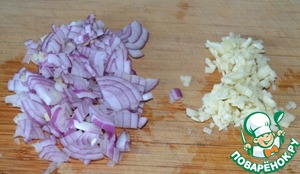 Лук и чеснок почистить и мелко нарезать для соуса.