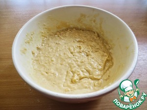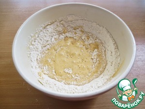 Смешать опару с яично-масляной смесью и затем постепенно смешать с мукой