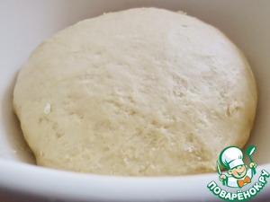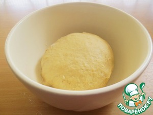 Тесто тщательно вымесить. Оно не должно получится крутым и одновременно не должно прилипать к рукам. Собрать тесто в шар, накрыть пленкой и оставить в теплом месте на 1 час.