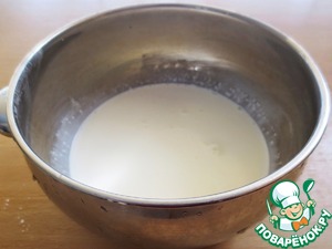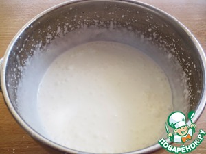 Дрожжи развести в теплом молоке с 1 ст. л. сахара и 2 ст. л. муки. Перемешать, оставить на 15 минут. Опара должна подняться.