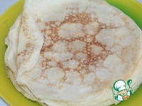 Печем блинчики. Блинчики получаются тонкими, но прочными. Очень рекомендую этот рецепт для приготовления закусочных блинчиков.