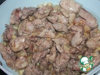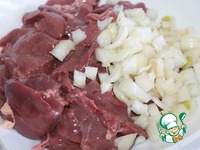 Печень нарезаем вместе с 1 головкой лука. Печень можно заменить на мясо или рыбу.