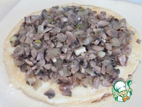 Блинчик и рис. Накрываем все блинчиком. Натягиваем тесто. Защипываем. Переворачиваем швом вниз. Рис должен быть нижним слоем, так как он хорошо впитывает влагу и не дает ей выйти за пределы теста. Даем постоять 20 минут. Делаем несколько проколов зубочисткой.