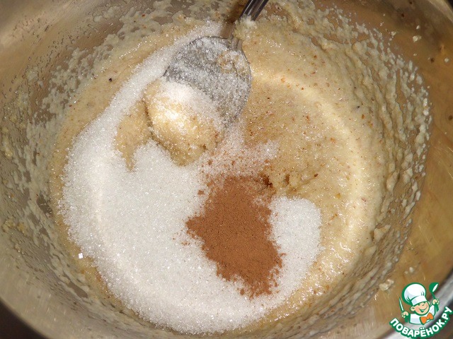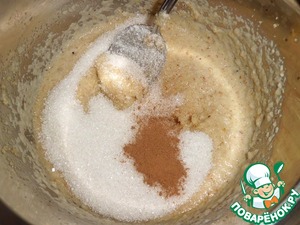 Добавляем сахар и корицу, прогреваем несколько минут на среднем огне.