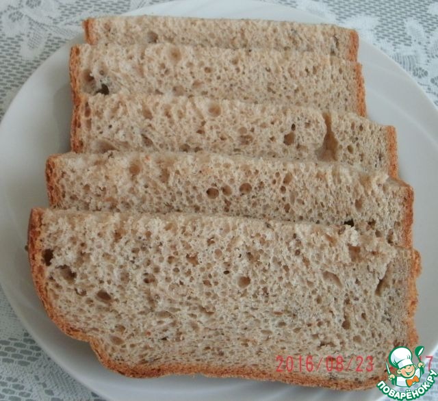 Девочки и мальчики, всем доброго времени суток. Сегодня хочу поделиться с вами очень вкусным, ароматным хлебушком. Рецепт взят мной из недавно приобретенной книги "Хлебопечка 350 новых рецептов". Этот хлеб я пеку уже третий день подряд. Ну очень вкусный и всегда удачный. Всех любителей домашнего хлеба жду к себе в гости.