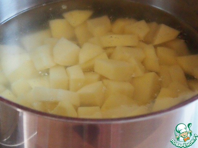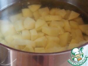 Картофель очистить, порезать на кусочки и отварить в течение 10 минут.