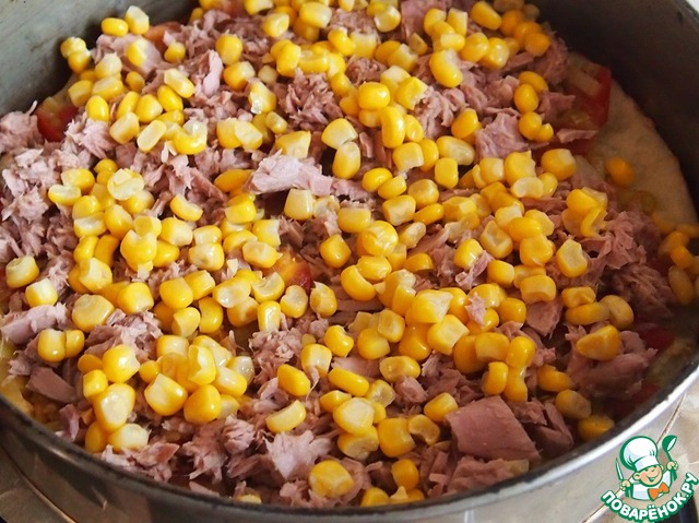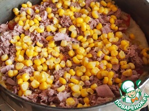 Добавить консерву тунца (жидкость удалить) и консервированную кукурузу (тоже без жидкости).